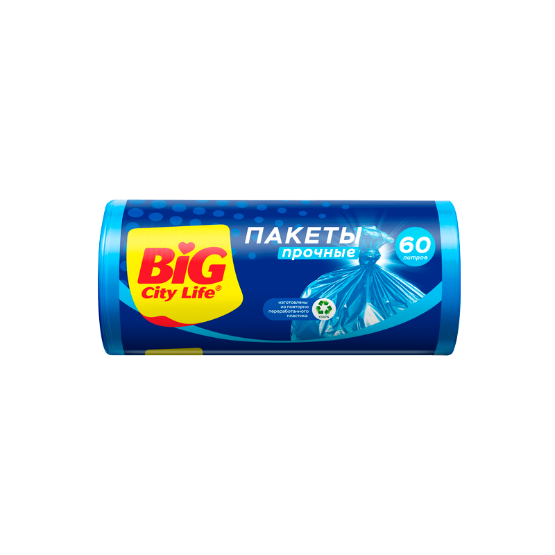 Очень прочные и эластичные пакеты BIG City Life. Высокая грузоподъемность, выдерживают вес до 30кг. Тип шва «Star», что позволяет лучше распределить груз по дну и минимизировать прорыв и выпадение мусора из пакета.