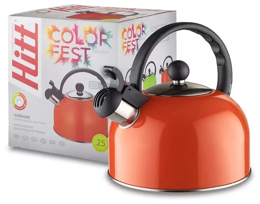 Чайник Hitt Colorfest со свистком для индукционных плит 25 л