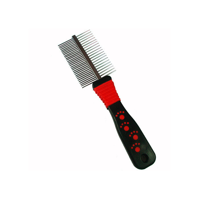 Двухсторонняя расческа Hello Pet идеальна для гигиенического груминга кошек и собак, удаляет старую шерсть и грязь, предотвращает скатывание, способствует росту и оздоровлению шерсти. Закругленные кончики мягко и бережно воздействуют на кожу животного. Эргономичная ручка украшена оригинальными декоративными элементами в виде следов лапок.