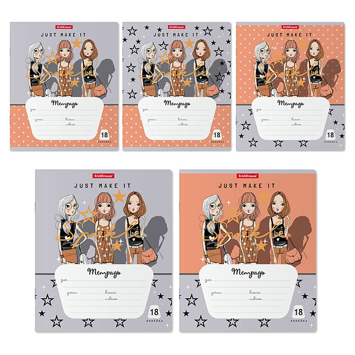 Тетрадь школьная ученическая Erich Krause Top Models в клетку A5+ 18 листов в ассортименте
