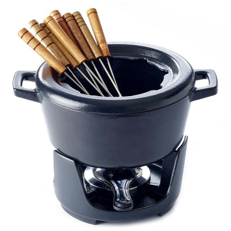 | Комплектация | Вилка для фондю с деревянными ручками с разноцветными наконечниками - 8 шт, чугунный котелок - 1 шт, подставка - 1 шт, горелка - 1 шт. |