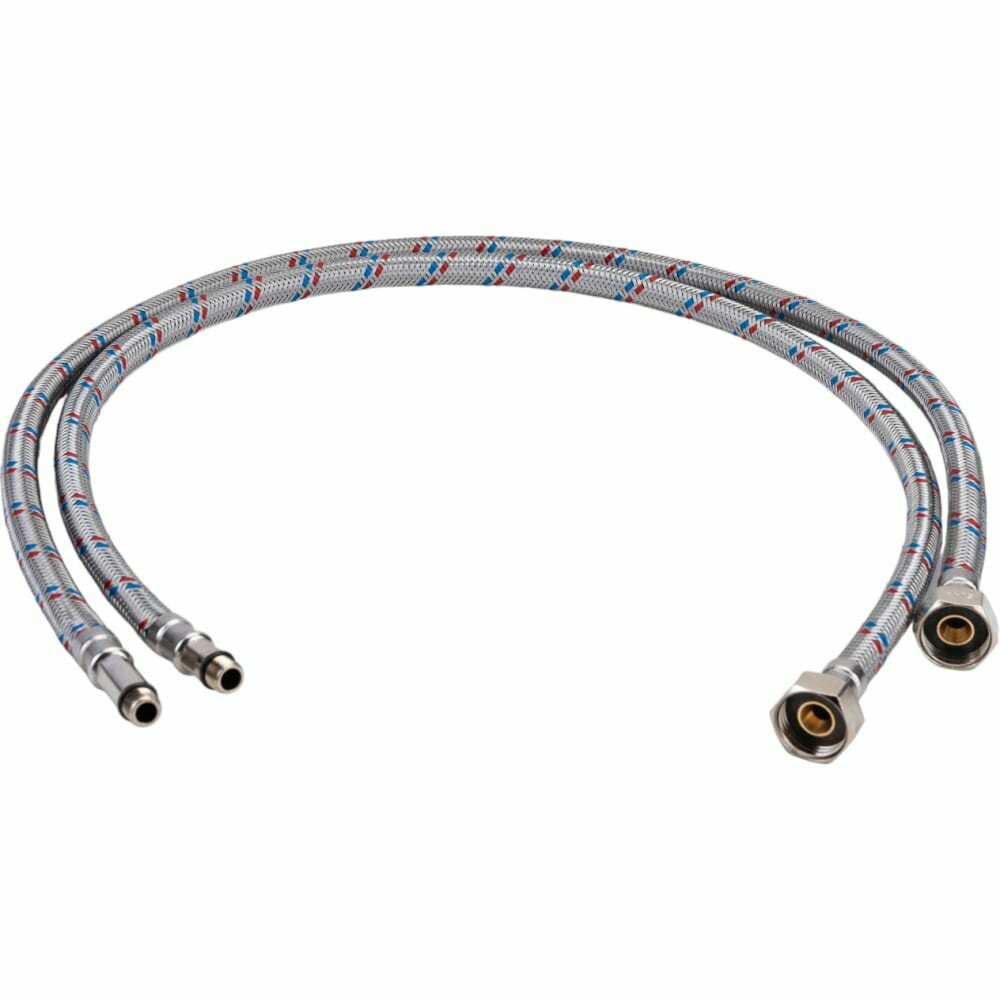 Комплект гибкой подводки для подключения смесителя Состоит из пары латунных подводок. Подводка со штуцером для непосредственного присоединения к смесителям. Изготовлена из нетоксичного этиленпропиленового каучука. Подходит для холодного и горячего водоснабжения.