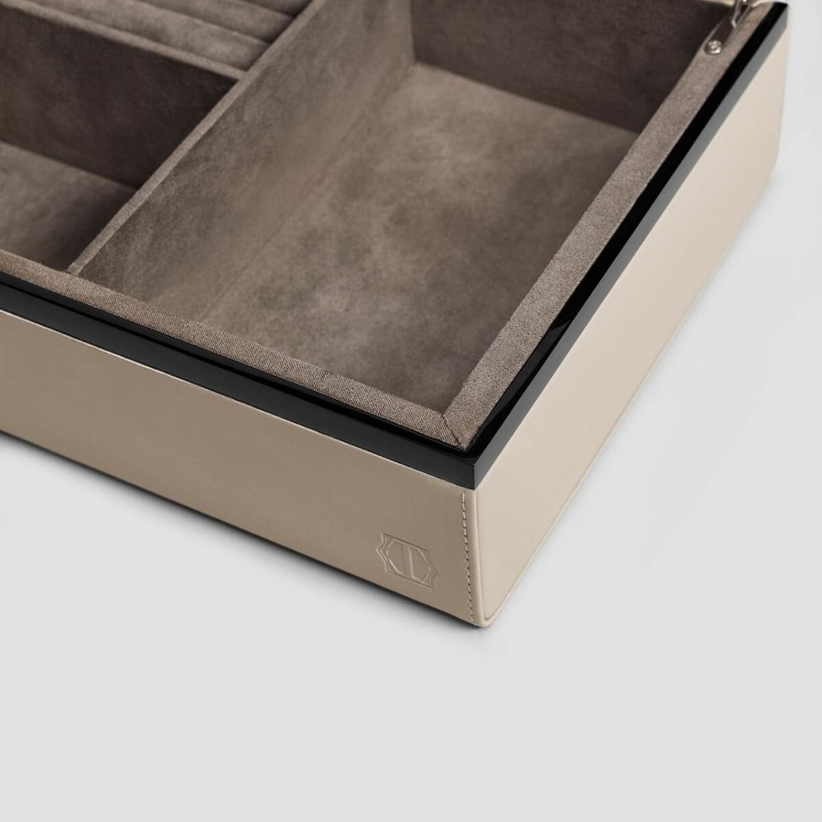 Шкатулка «Лаволл» изготовлена из дерева, сверху – высокотехнологичный материал Lezotex. Это современный экополимер с микропористой структурой, влагопроницаемый и дышащий, подобно натуральной коже. Он тактильно, своей структурой и свойствами напоминает кожу, при этом его изготовление не наносит вреда окружающей среде. Этот экологичный материал тактильно приятен и мягок. Для его финишного покрытия был разработан лак на основе натуральных смол, дополненных специальными антибактериальными компонентами. Матричная система нейлоновых волокон Lezotex обладает повышенной прочностью и устойчивостью к механическим повреждениям, что в разы увеличивает срок службы шкатулки. Блестящие лакированные вставки по периметру «Лаволл» не только украшают шкатулку, но и служат дополнительной защитой края крышки. Приятный оттенок пенки капучино и контрастный черный глянец вставки – это стиль и элегантность. Внутри шкатулки мягкий бархат кофейного оттенка, для бережного хранения ценностей. При желании можно выбрать большую шкатулку 25х20 см, если украшений не очень много – более компактную 20х15,5 см.