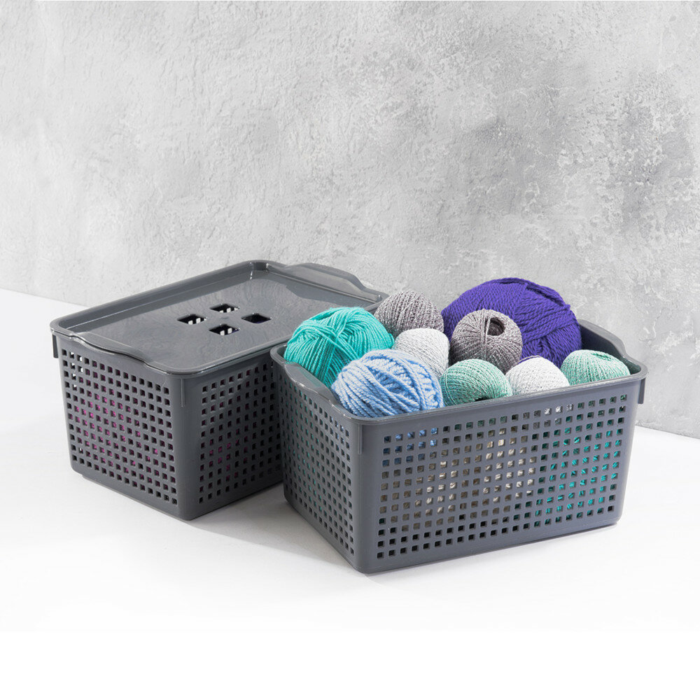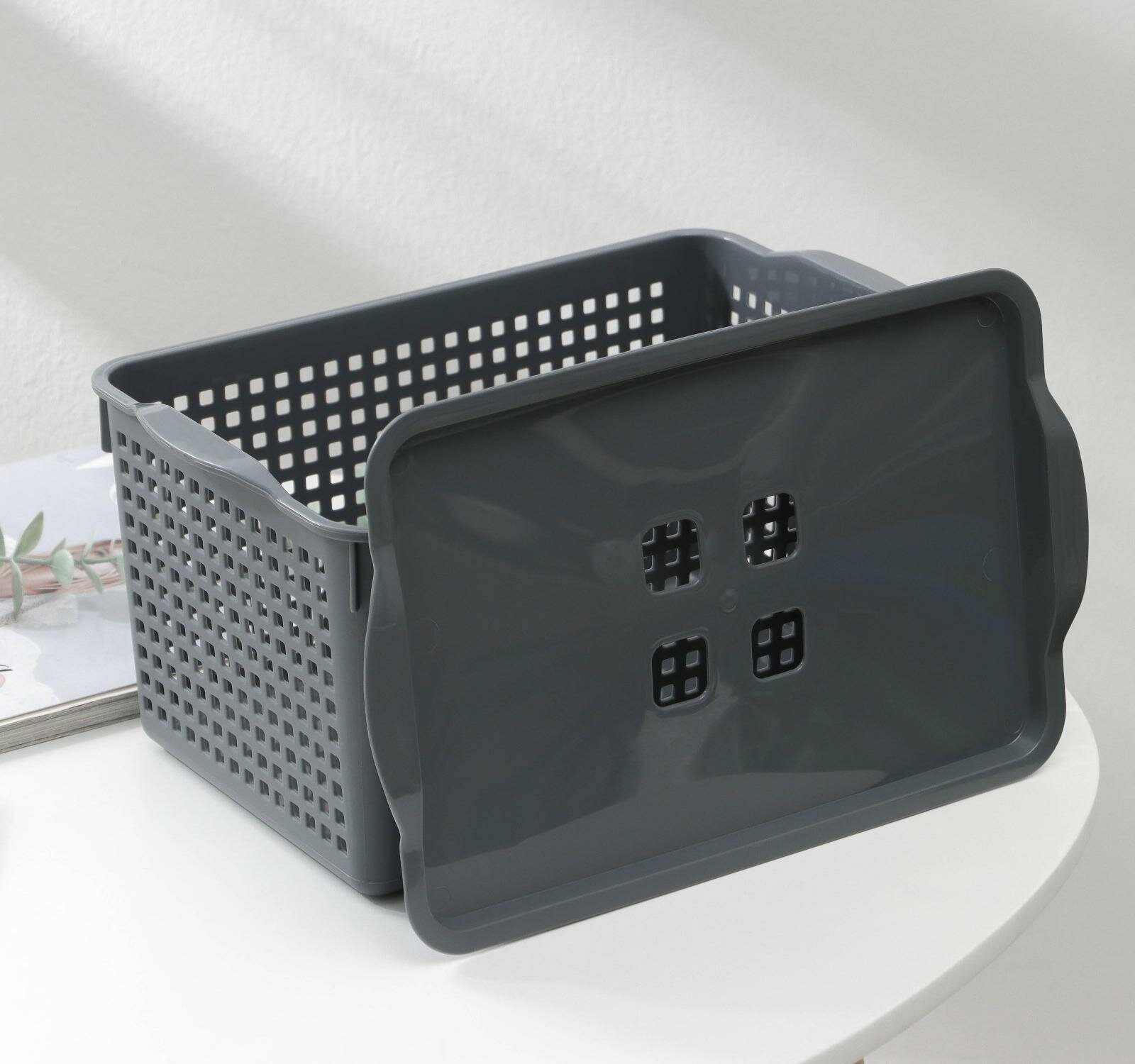 Корзина для хранения «Лофт» – незаменимый помощник в каждом доме. Многофункциональный органайзер можно использовать для хранения канцелярских принадлежностей, пищевых продуктов, хозяйственных товаров, средств личной гигиены, детских игрушек, а также косметики и любых аксессуаров. Корзинка станет верным помощником на кухне, в ванной, прихожей, спальне, детской комнате, на балконе, в гараже, кладовке и любых других помещениях. Ее можно поставить в шкаф или на тумбочку. Благодаря эргономичным ручкам на стенках короба и его лёгкому весу, вы сможете без труда переносить его в любое место. Перфорация в стиле «Лофт» на стенках контейнера способствует циркуляции воздуха, благодаря чему в нём не скапливается влага, а находящиеся в нем вещи вентилируются. Контейнер выполнен из прочного пластика, предназначенного для пищевых продуктов. Коробки отличаются компактной формой, вместительностью и удобством. Пустые органайзеры удобно хранить – они вставляются друг в друга, экономя место.
