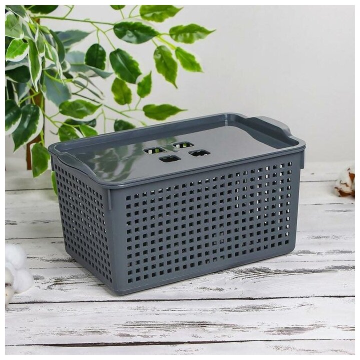 Корзинка violet 38л с крышкой для хранения косметики и мелочей Лофт цвет серый Виолет-хозпромпродук