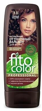 Натуральный оттеночный бальзам Fito color professional на основе масла арганы и натуральных экстрактов дарит безупречный сияющий цвет, великолепно ухаживает за волосами и создает Ваш неповторимый эффектный образ! После использования бальзама волосы приобретают эксклюзивный модный оттенок, становятся гладкими, плотными, и зеркально блестящими, как после салонного биоламинирования! Натуральные экстракты и масла мгновенно укрепляют волосы по всей длине, делают их здоровыми, пышными и сильными. Уникальное масло арганы глубоко питает, восстанавливает и гарантирует стойкость выбранного оттенка. Бальзам не содержит аммиак, легко наносится и не течет. Оттеночный бальзам гарантирует 100% попадание в выбранный оттенок!