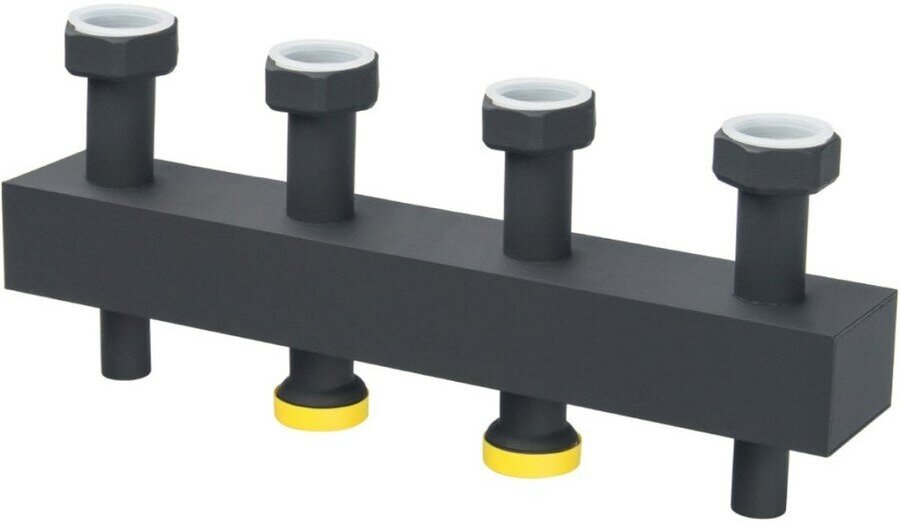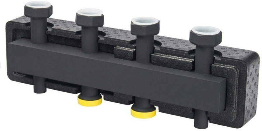 Стальной распределительный коллектор на 2(3) отопительных контура, в теплоизоляции DN 25 STOUT (СТАУТ) SDG-0017-004023 применяется в отопительных системах закрытого типа для установки групп быстрого монтажа. Устройство предназначено для перераспределения поступающего теплоносителя между несколькими контурами.