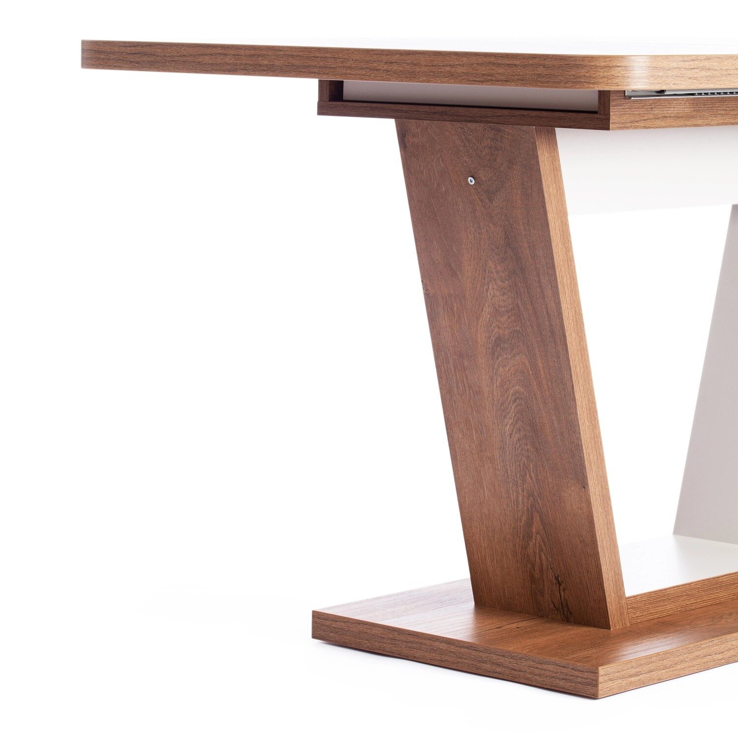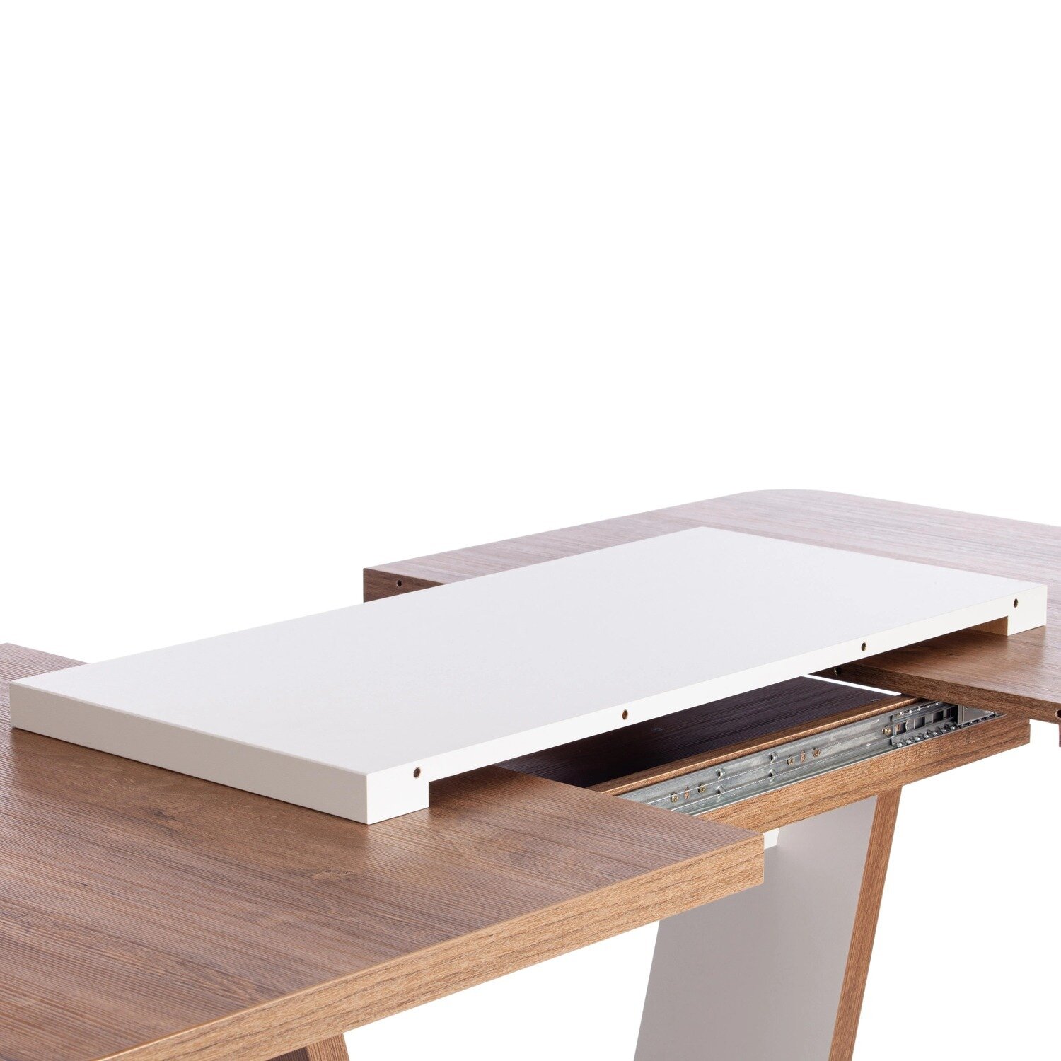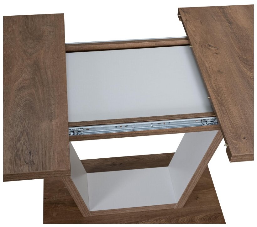 Визуально легкий стол-транформер VOX украсит собой любую домашнюю обстановку. Большая столешница, оригинальная ножка-опора и удачное сочетание цветов дуба артисан и графита – идеальное решение для современного стильного интерьера. Размеры стола дают возможность с комфортом разместить от четырех до восьми человек. Вставка стола убирается горизонтально в подстолье. Края оклеены прочной пластиковой кромкой толщиной 2 мм. ЛДСП толщиной 18+18 мм. Механизм раздвижения - синхронного типа со стопором. Стол VOX отлично подойдёт для гостиной, для кухни или для загородного дома. Стол очень прост в сборке, инструкция по сборке прилагается.