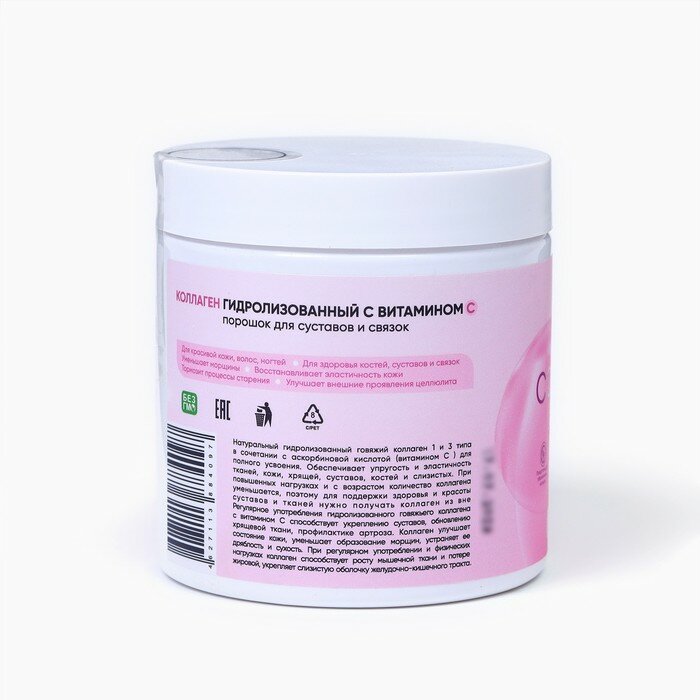 Регулярное употребления гидролизованного говяжьего коллагена с витамином С способствует укреплению суставов, обновлению хрящевой ткани, профилактике артроза. Коллаген улучшает состояние кожи, уменьшает образование морщин, устраняет ее дряблость и сухость. При регулярном употреблении и физических нагрузках коллаген способствует росту мышечной ткани и потере жировой, укрепляет слизистую оболочку желудочно-кишечного тракта.