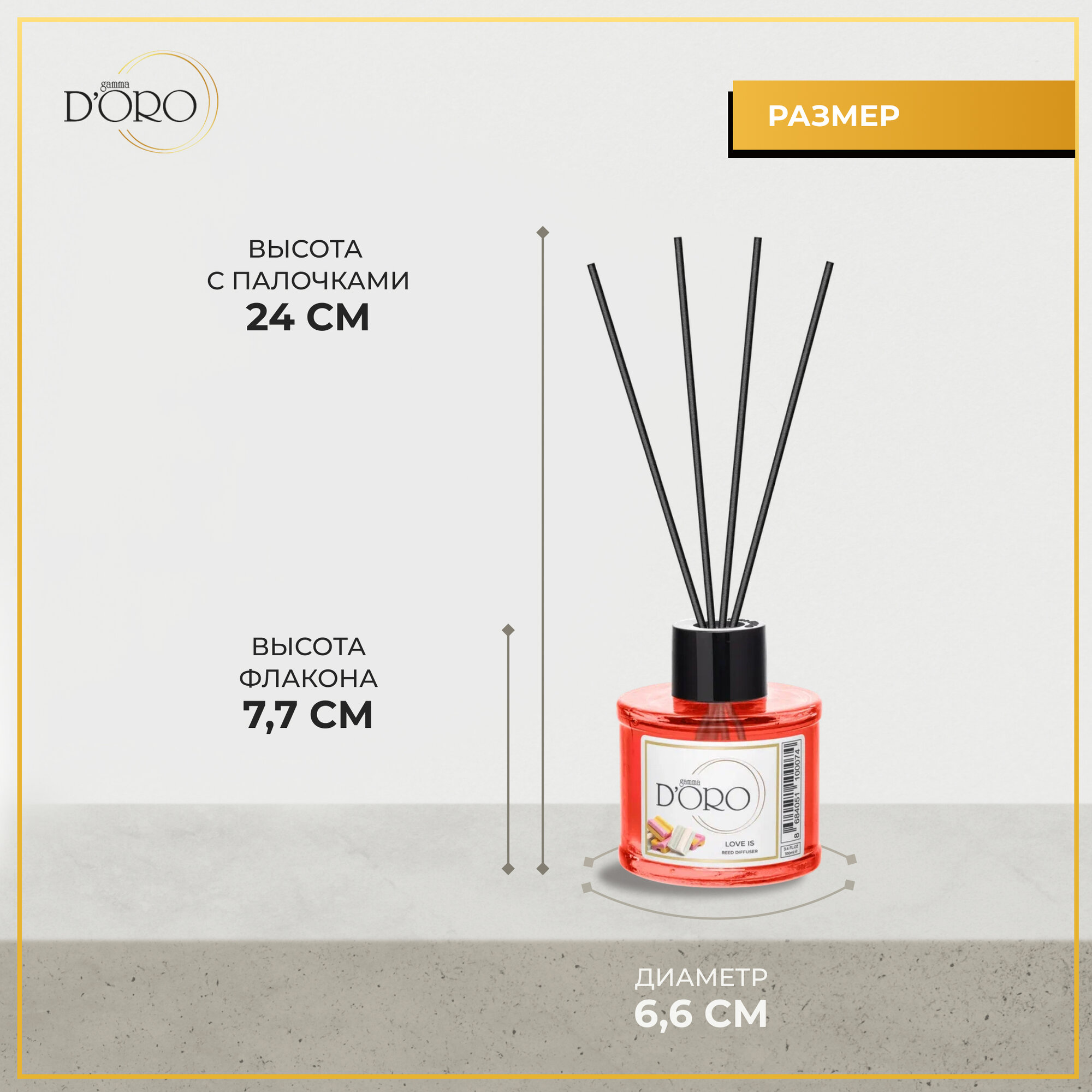 Аромадиффузор с палочками Утренний кофе от бренда Gamma D'Oro – для истинных любителей аромата свежесваренного кофе. Этот притягательный парфюм для дома поможет вам проснуться и настроиться на нужный лад, когда вы ощутите шикарный кофейный аромат ароматизатора для дома с палочками с нотами фундука и сливок в своем доме или рабочем пространстве благодаря нашему диффузору для дома. Натуральные эфирные масла, входящие в состав наших ароматов для дома, помогают укрепить иммунитет и улучшить самочувствие, они безопасны даже для детей и животных. Аромапалочки для дома подходят для ароматерапии, а также в качестве благовония. Аромат при этом стойкий и мягкий в отличие от резких освежителей воздуха. В помещении в один миг исчезают посторонние запахи: еды, бытовой химии, дыма, чувствуется лишь легкий приятный натуральный аромат парфюмерии для дома.Аромадиффузор с палочками Gamma D’Oro может применяться в загородном доме (аромат для дома с палочками), квартире (ароматизатор для комнаты), сан узле (диффузор для туалета), а также в офисе, салоне красоты, косметическом кабинете или студии йоги.Наш интерьерный освежитель воздуха прекрасно впишется в любой, даже самый изысканный интерьер, ведь флакон для диффузора имеет универсальный дизайн.В состав жидкости для аромадиффузора входят сертифицированные аромамасла из Франции, в качестве палочек для ароматического диффузора - высококачественные фибровые аромапалочки, которые равномерно впитывают эфирные масла и постепенно, в течение длительного времени (до 8 недель для ароматического диффузора объемом 100 мл) отдают в окружающее пространство масло из диффузора. Срок годности диффузора для дома с палочками Gamma Doro составляет 5 лет.Ароматический диффузор с палочками произведен с Турции на специализированном парфюмерном заводе, сертифицированном по всем международным стандартам. Диффузоры ароматические Гамма Доро зарегистрированы в РФ и имеют сертификат безопасности продукции.Парфюм для дома с палочками Гамма Доро будет оригинальным подарком женщине, на 8 марта, учителю или коллеге. Аромадиффузор - прекрасный элемент для создания уюта дома.Инструкция по применению ароматизатора с палочками для дома: снимите с диффузора крышку и выньте пластмассовую пробку. Вставьте требуемое количество палочек для ароматического диффузора (чем больше ароматизированных палочек, тем ярче будет аромат, но выше расход духов для дома). Наденьте на аромадиффузор крышку. Раз в 3-4 дня переворачивайте аромапалочки для равномерного распространения масла для ароматизатора. Наслаждайтесь легким натуральным ароматом ароматизатора с палочками Gamma D’Oro!