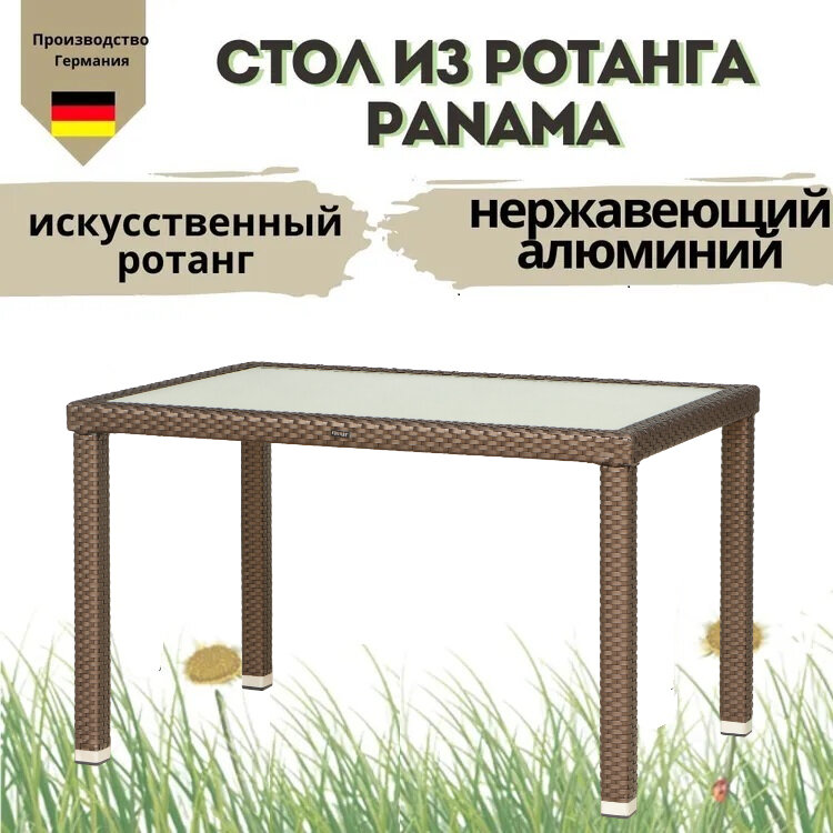 Стол Panama 120х80 ротанг стекло алюминий цвет мокко Konway