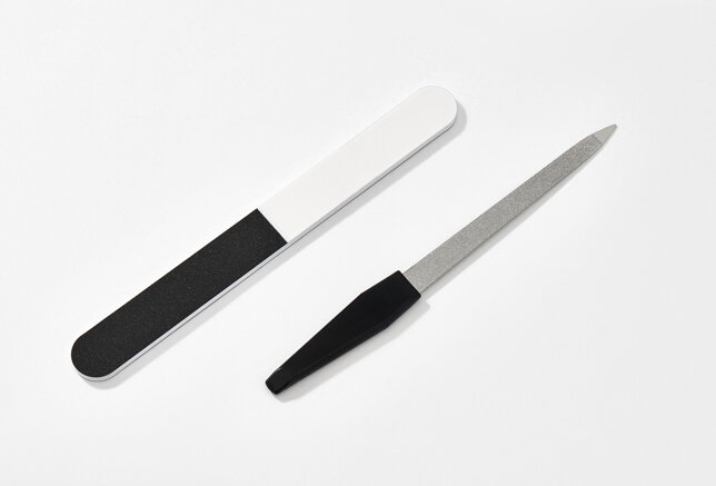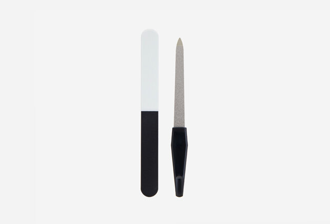 В наборе: - Пилка алмазная. Пилка снабжена удобной пластиковой ручкой и имеет алмазное напыление для подпиливания всех типов ногтей. - Пилка полировочная. Служит для обработки как натуральных, так и искусственных ногтей.Абразивность: 320/600/3000 грит.
