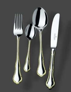 Фабрика-производитель столовых приборов PICARD & WIELPUTZ основана в 1927 году в городе Золинген, Германия. Столовые приборы сделаны из коррозионностойкой хромоникелевой стали 18/10 (18 % хрома, 10 % никеля). Рисунок черенка декорирован золотом 24 К, толщина покрытия 1 микрон. На каждом изделии стоит клеймо «SOLINGEN GERMANY». Красивые и удобные столовые приборы SOLINGEN позволяют вам не только украсить стол, но и создают особую атмосферу праздника. Особый шик столовым приборам придает матированная поверхность черенков. Оптимальная форма столовых приборов SOLINGEN шлифовалась десятилетиями. Многообразие декоров, удобство пользования и износостойкость - результат многолетнего наследия немецких мастеров в изготовлении изделий для сервировки стола. Столовые приборы фабрики-производителя PICARD & WIELPUTZ отвечают самым высоким современным требованиям, являются изделиями высшей категории качества и имеют практически неограниченный срок эксплуатации. Набор столовых приборов упакован в подарочный футляр, который изготовлен из дерева и отделан искусственными кожей игуаны снаружи и замшей внутри. Для мытья столовых приборов применяйте жидкие моющие средства, не содержащие абразивы. Рекомендуется мыть в посудомоечной машине.