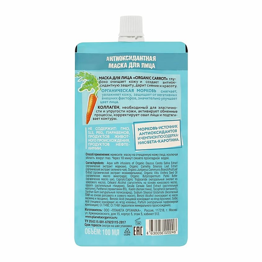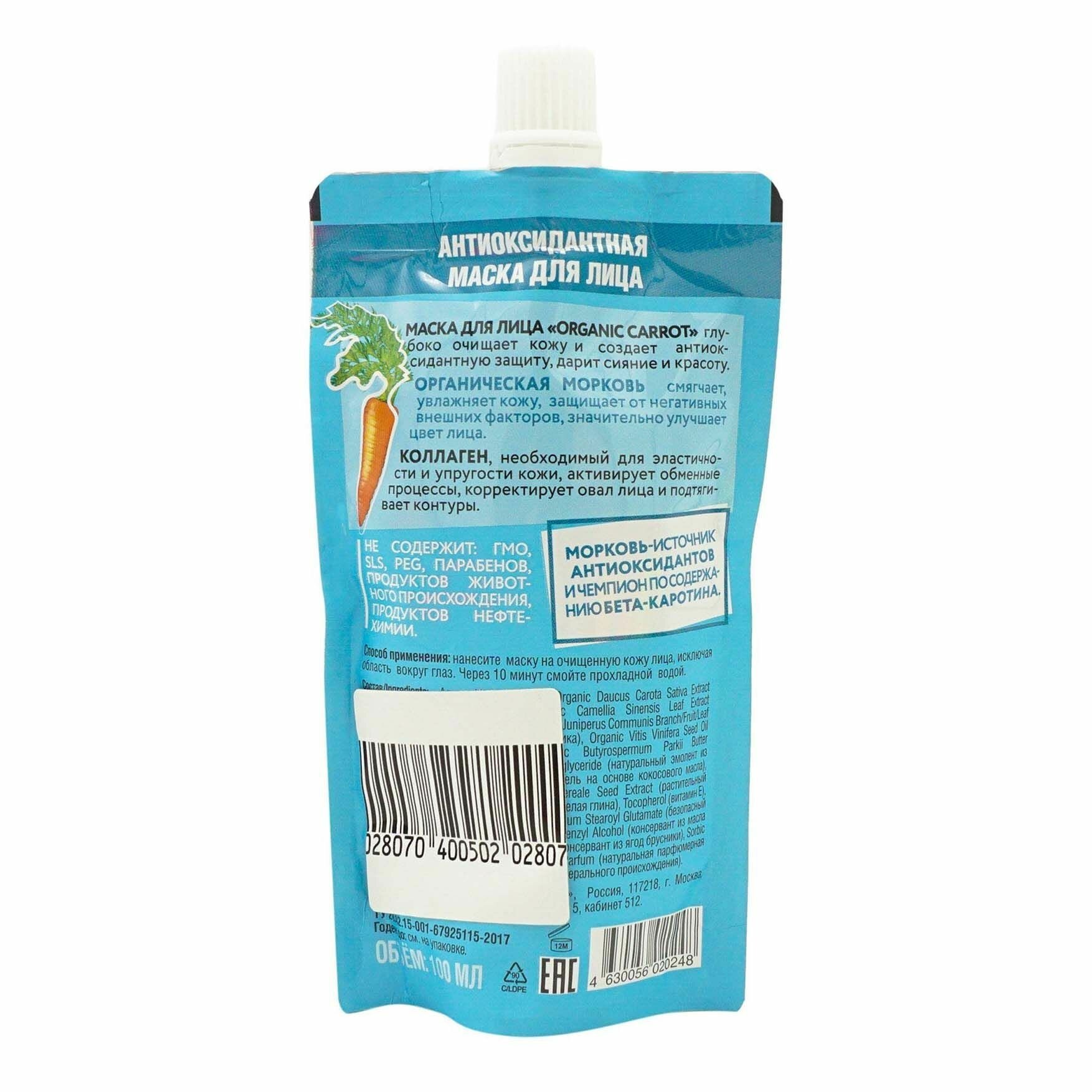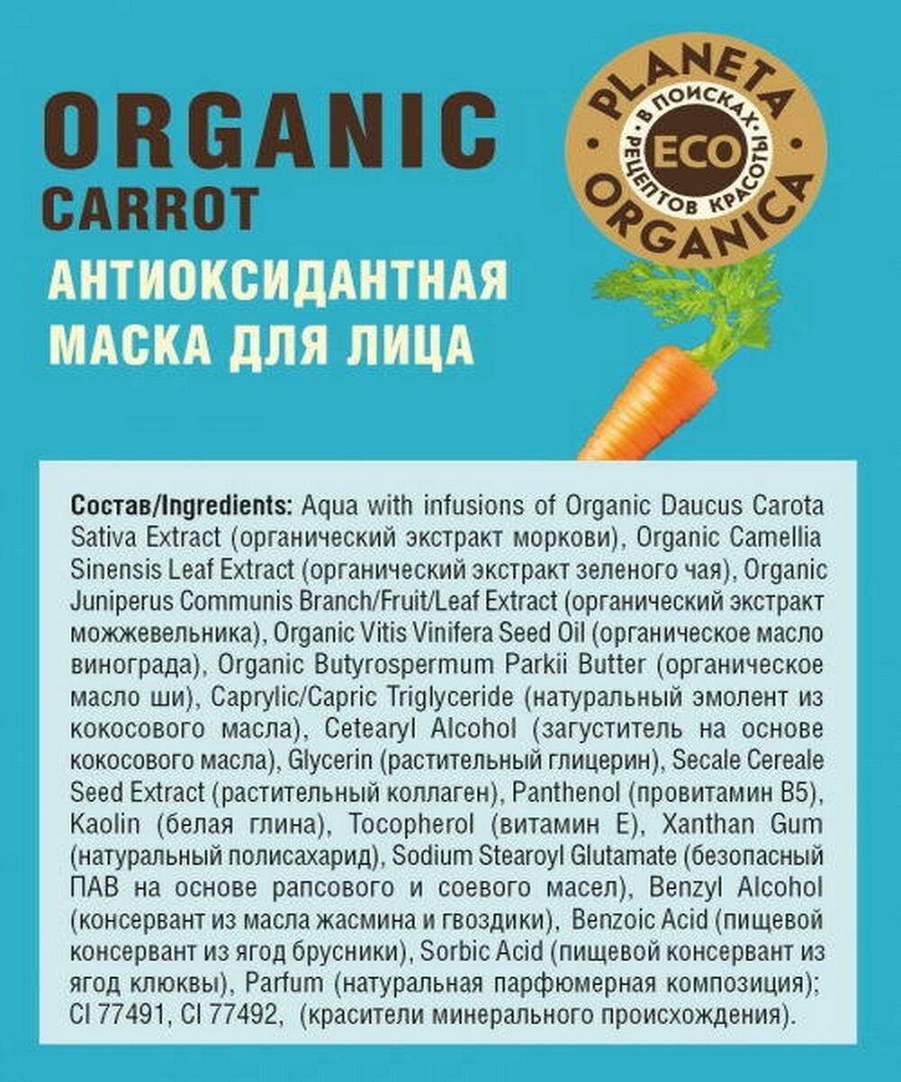 Маска для лица Organic carrot глубоко очищает кожу и создает антиоксидантную защиту, дарит сияние и красоту.