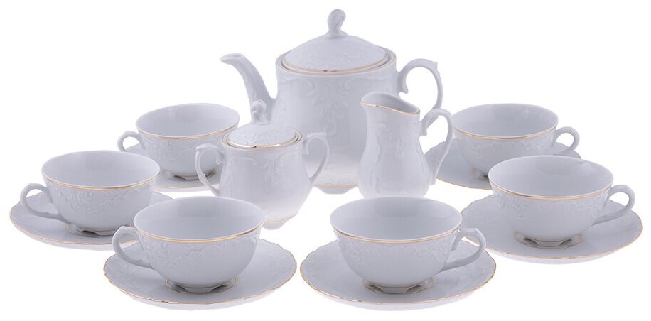 | Состав набора | блюдце - 6 шт.; чашка - 6 шт.; заварочный чайник - 1 шт.; молочник - 1 шт.; сахарница - 1 шт. |
