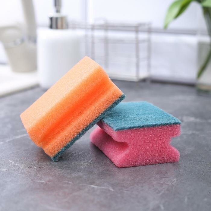Удобная профилированная форма губок для мытья посуды позволяет комфортно справляться, как с обычными загрязнениями, так и с пригоревшими остатками пищи, а также оберегать руки и сохранять маникюр.