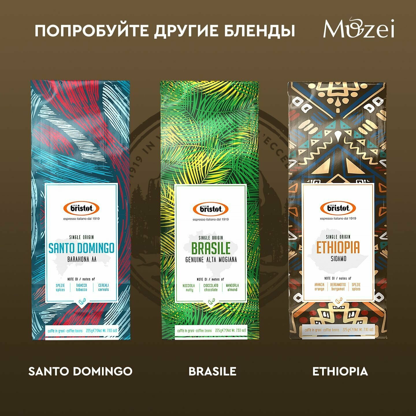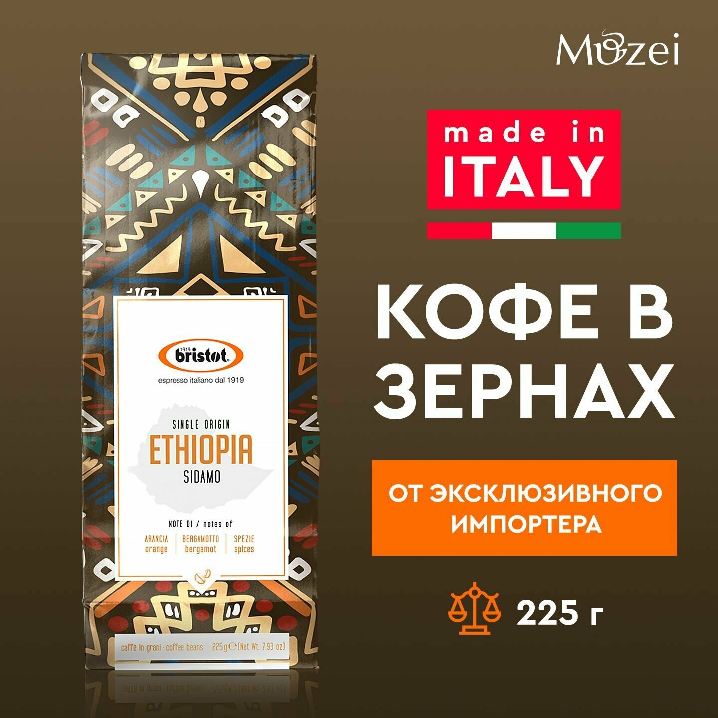 Состав: арабика 100%. Состав почвы и климат, характерные для данного региона произрастания, придают кофе пряные и утонченные древесные нотки, пронизанные легкой, но живой кислинкой. Аромат: пряности, шоколад. Кислотность: средне-низкая. Тело: среднее. Вкус: смесь пряностей, шоколад. Bristot - ведущий бренд Procaffe S.p.A. - компании, сыгравшей существенную роль в развитии культуры итальянского эспрессо. Сегодня изысканный и утонченный кофе Bristot почитается ценителями кофе во всем мире. Эксклюзивные смеси Bristot удовлетворяют вкусы самых взыскательных клиентов сегмента HoReCa более чем в 65 странах мира. Бренд успешно конкурирует с основными игроками рынка, предлагая широкий ассортимент качественной продукции, соединившей в себе традиции ремесленничества и инновационные технологии. С 1919 года философия Bristot остается неизменной: превосходное качество и первоклассный сервис - отличительные черты бренда уже на протяжении ста лет его развития. Фабрика по обжариванию кофе расположена в городке Беллуно в предгорьях Доломитовых Альп, в окружении лугов и холмов, между реками Пьяве и Ардо. Беллуно - уникальное и неповторимое место, единственная столица провинции в Италии, которая находится в национальном парке Доломиты. Беллуно уникален своими трудолюбивыми жителями, научившимися терпеливо жить в гармонии с суровой природой своего региона. Именно благодаря им Bristot сегодня является брендом с мировой известностью, ставшим синонимом по-настоящему качественного кофе.