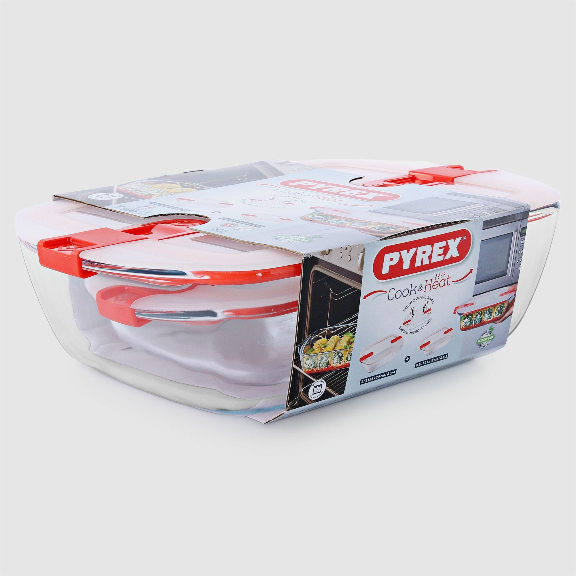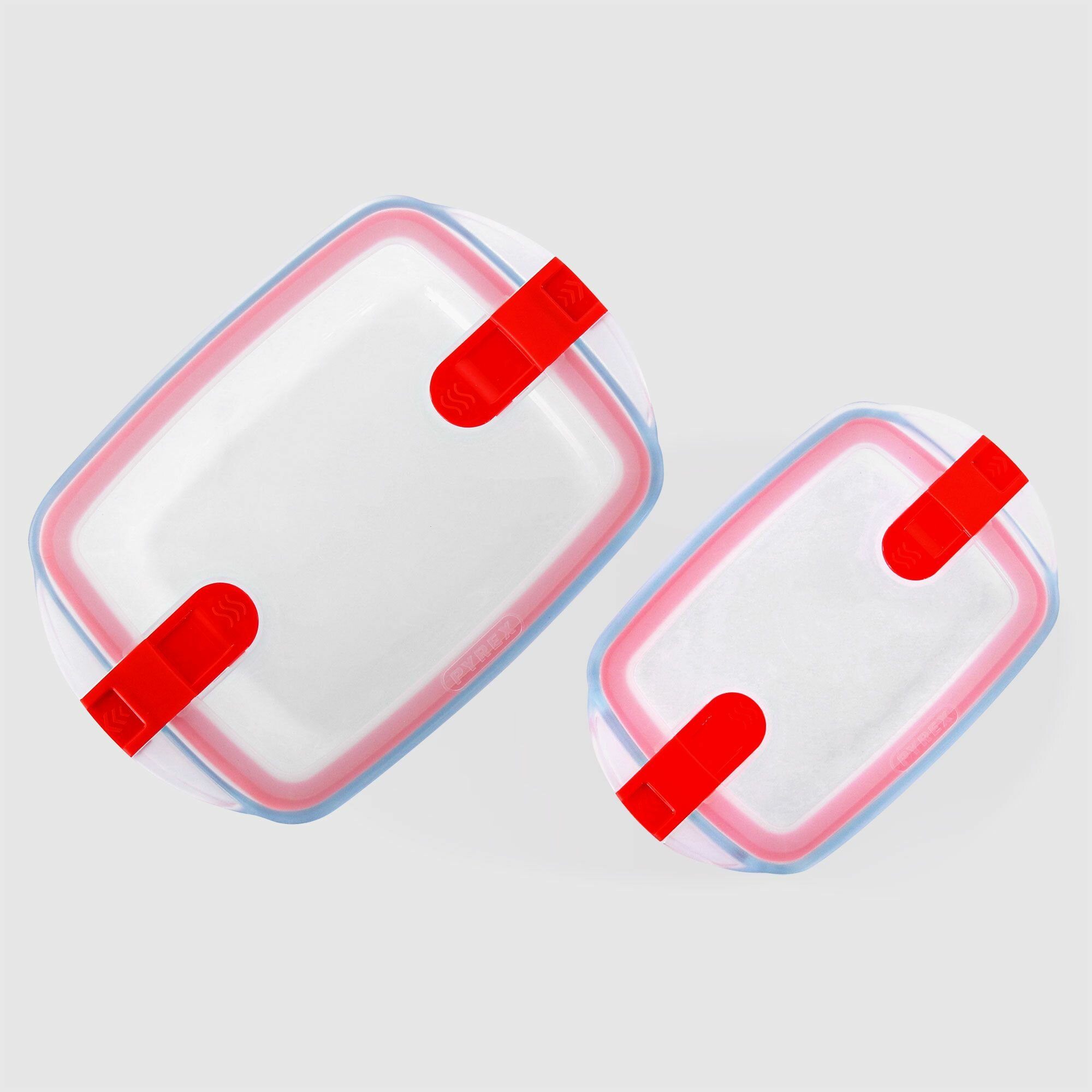 Набор 2пр стеклянных жаропрочных контейнеров Cook & Heat прямоугольных с крышкой 28Х20см и 23Х15смс клапанами для микроволновки Pyrex