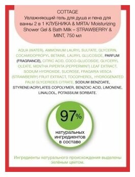 Гель для душа и пена для ванны Cottage Moisturizing увлажняющий Strawberry Mint 750 мл