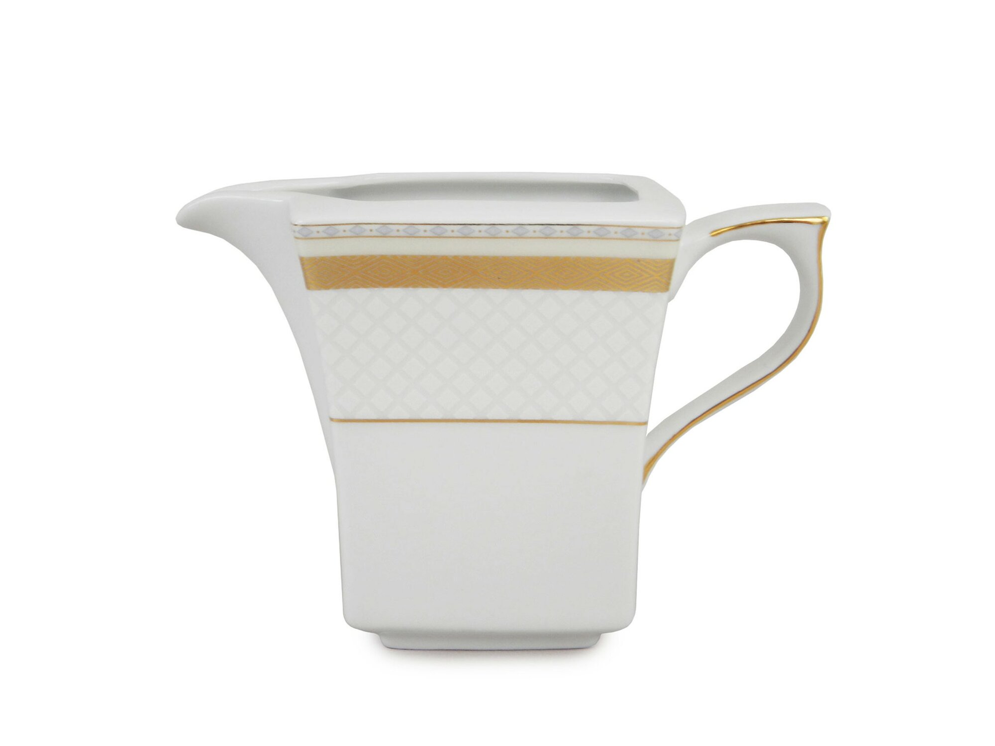 Молочник - 1 шт. Молочник 0,25л Lwow, " Золотой кант, сетка платина" 1 шт. Молочник - незаменимый инвентарь на кухне любого бариста или просто любителя кофе! Этот удобный посудный предмет удобен для сервировки стола и подачи молока, который так необходим для кофейных напитков. Молочник, или питчер, может использоваться как для хранения молока на кухне, так и для взбивания сливок для капучино. Благодаря этому прибору вы легко сможете приготовить любимый напиток на дому со вкусом, достойным лучших кофемашин. Независимо от того, используете ли вы его в домашних условиях или в качестве профессионального инструмента на работе, молочник будет отличным дополнением к вашей кухонной посуде. Покупайте кухонные молочники для своего домика уже сегодня и наслаждайтесь любимым кофе вместе с вашими близкими!
