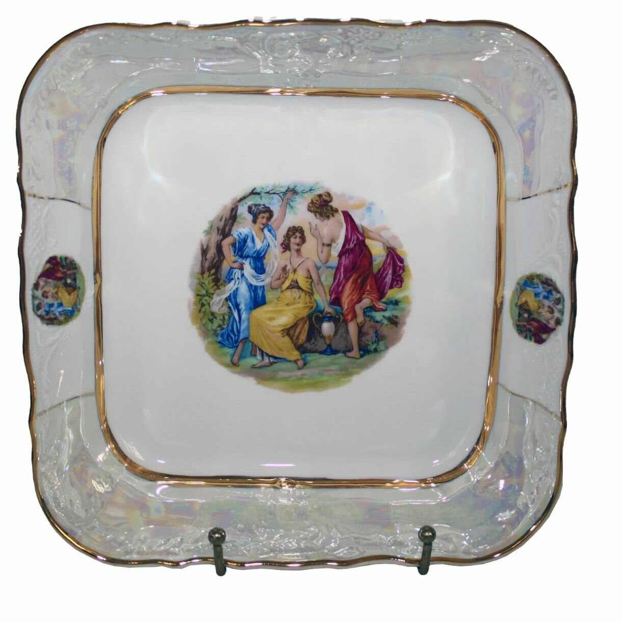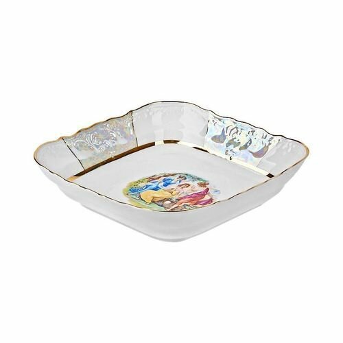 Bernadotte - утонченность и изящество чешского фарфора. Изысканный чешский фарфор легкий, но прочный, поэтому служит десятилетиями. А уникальный дизайн коллекционной посуды Бернадотт подчеркивает ее благородное происхождение. Бренд обладает собственным производством в самом сердце Карловых Вар – крупного месторождения глины. Выполненный в традиционном стиле барокко, фарфор Bernadotte производится как из белой глины, так и глины цвета слоновой кости. Именно благодаря высокопробному сырью фарфоровая посуда считается такой ценной. За сервизами очень легко ухаживать, ведь покрытие не теряет насыщенности при любых температурах. Роскошная коллекция предметов сервировки «Мадонна перламутр» – яркий представитель лучшего чешского фарфора, выдержана в классическом стиле и способна освежить ваш домашний быт. Эту посуду выбирают для создания за столом особых романтических или торжественных настроений. Великолепное качество перламутровой глазури и роскошь золота не оставят равнодушным никого, кто увидел эту серию. Коллекция выполнена из белого фарфора, на декоре изображены сюжеты античной тематики. Роскошности ей добавляет золотая окантовка волнистых краев. Изящный салатник красиво оформит праздничный стол и удивит вас лаконичным и стильным дизайном. Высокое качество и идеальное сочетание современных технологий с вековыми традициями создания посуды. Салатник квадратный 16 см