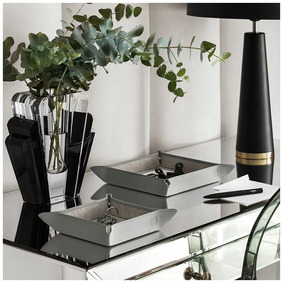 Монетница «Экретто» изготовлена из высокотехнологичного материала LEZOTEX®, современного экополимера с микропористой структурой, влагопроницаемого и дышащего, подобно натуральной коже.Своей структурой и свойствами LEZOTEX® напоминает кожу, при этом его изготовление не наносит вреда окружающей среде. Этот экологичный материал тактильно приятен и мягок. Для его финишного покрытия был разработан лак на основе натуральных смол, дополненных специальными антибактериальными компонентами. Матричная система нейлоновых волокон LEZOTEX® обладает повышенной прочностью и устойчивостью к механическим повреждениям, что в разы увеличивает срок службы изделий из этого материала.Оригинальный аксессуар «Экретто» создан для тех, кто любит порядок и одновременно ценит элегантность каждой детали в интерьере. Эта монетница-поднос идеально подойдет для прихожей, поможет организовать порядок на консоли, полке или тумбе и одновременно станет их украшением. Необычную форму монетнице придают фиксирующие кнопки по ее углам. Неяркий стильный оттенок серебристой полыни подойдет практически для любой обстановки.