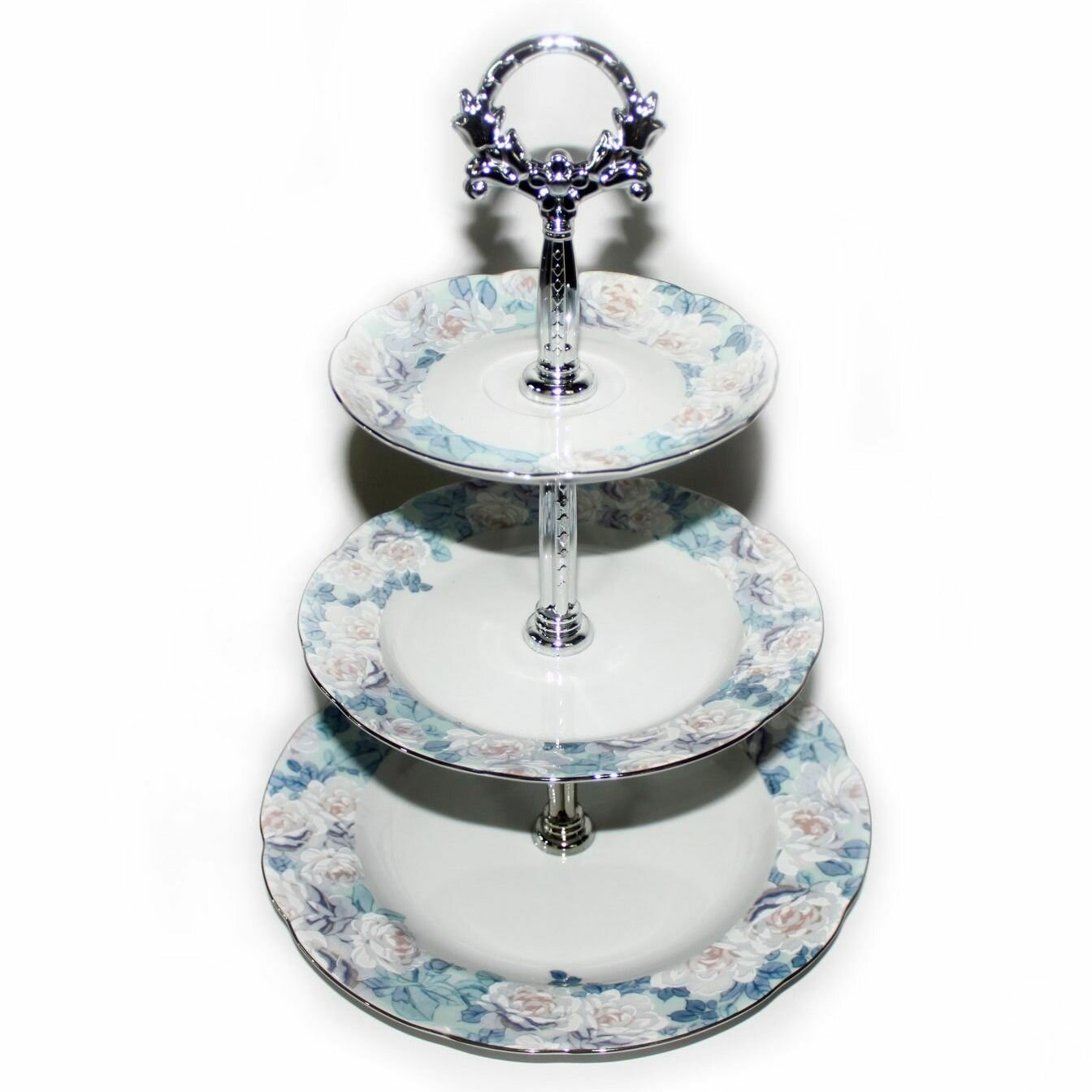 Thun - утонченность и изящество чешского фарфора. Изысканный чешский фарфор легкий, но прочный, поэтому служит десятилетиями. А уникальный дизайн коллекционной посуды подчеркивает ее благородное происхождение. Бренд обладает собственным производством в самом сердце Карловых Вар – крупного месторождения глины. Выполненный в традиционном стиле барокко, фарфор производится как из белой глины, так и глины цвета слоновой кости. Именно благодаря высокопробному сырью фарфоровая посуда считается такой ценной. За сервизами очень легко ухаживать, ведь покрытие не теряет насыщенности при любых температурах. Коллекция предметов сервировки "Роза" декорирована нежными голубыми розами, а край борта украшен платиной. Высокое качество и идеальное сочетание современных технологий с вековыми традициями создания посуды. Этажерка имеет 3 яруса и ручку для переноски. Ярусная менажница поможет эстетично сервировать большое количество разных закусок, десертов, фруктов, сыров, орехов, бутербродов. Такая горка может пригодиться не только во время праздника, но и на маленькой кухне она найдёт применение в повседневной жизни. Размер тарелок 14, 19 и 25 см, высота горки 35 см.