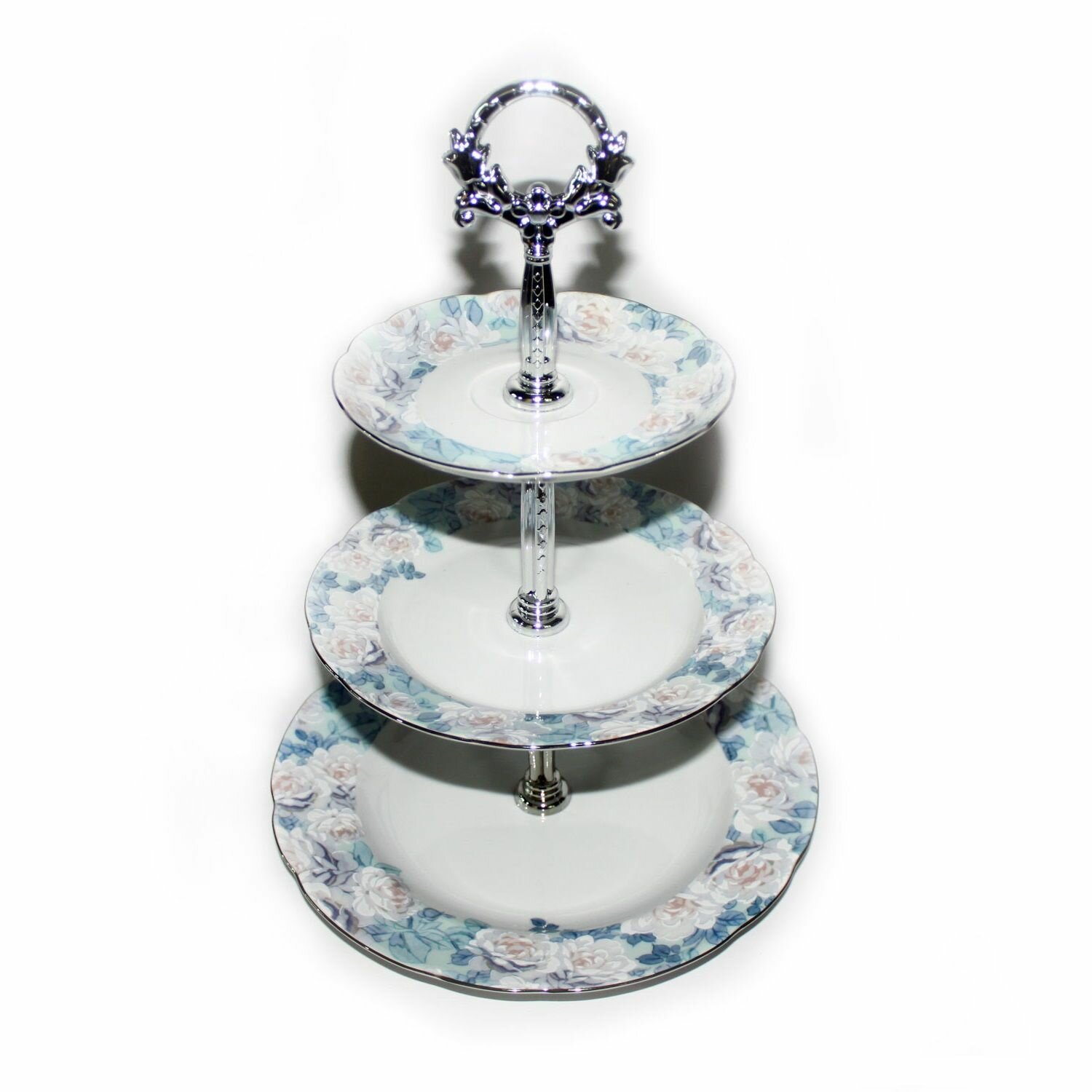 Этажерка Thun 1794 Голубая роза фарфор бело-голубая 27 х 34 х 40 см