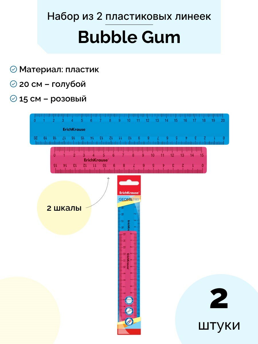 Набор из 2 пластиковых линеек Erich Krause Bubble Gum 15 и 20 см