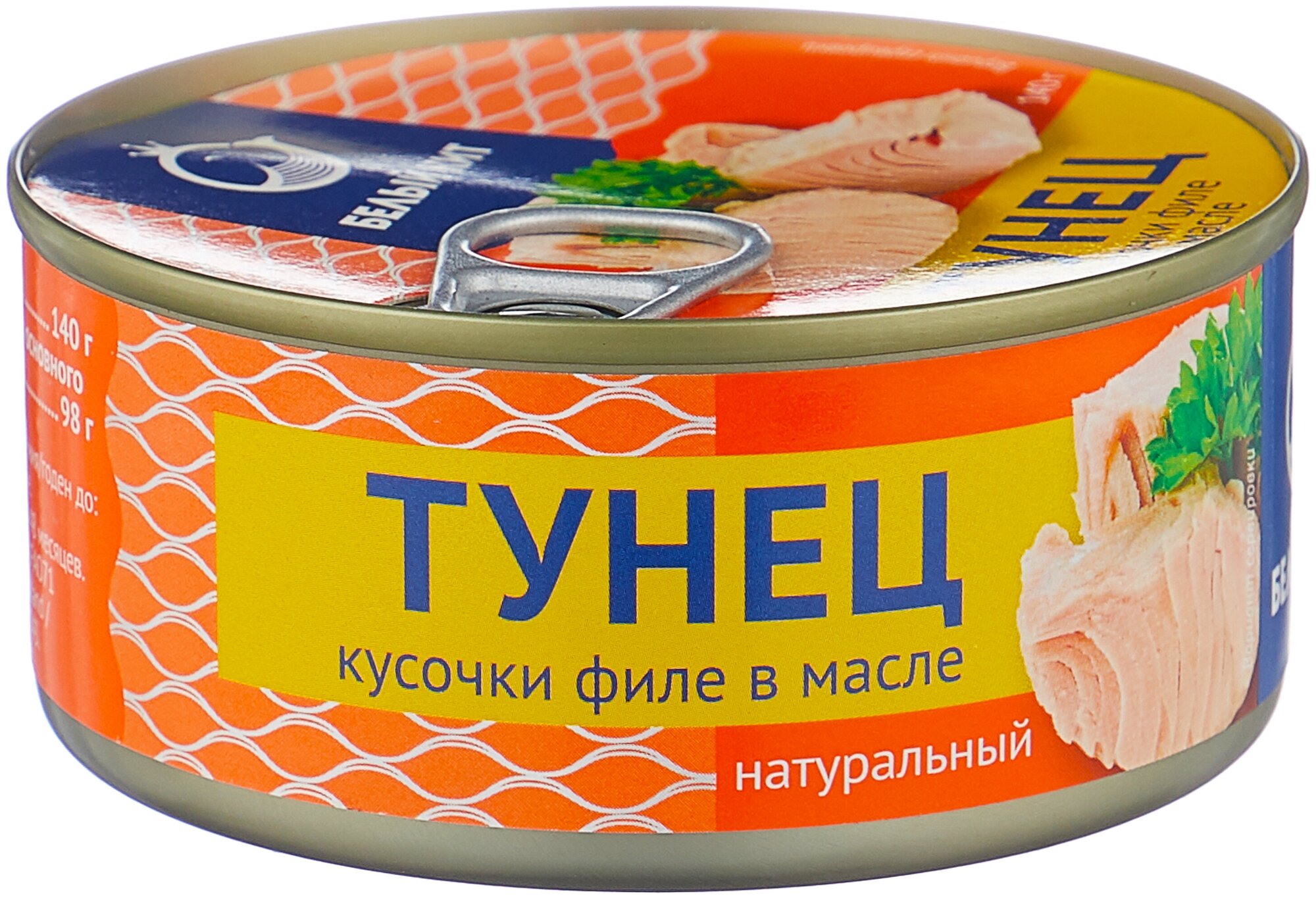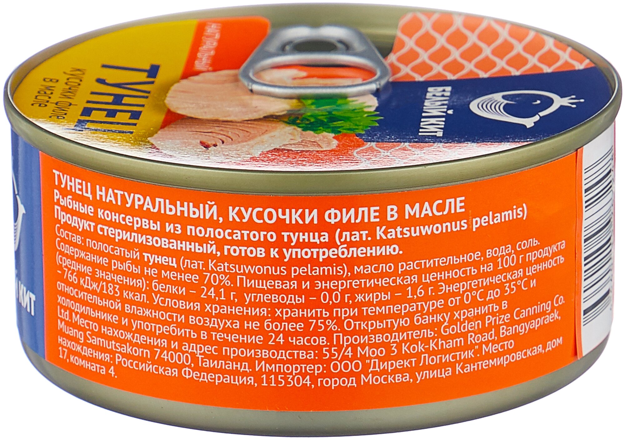 Белый кит Тунец натуральный кусочки филе в масле 140 г