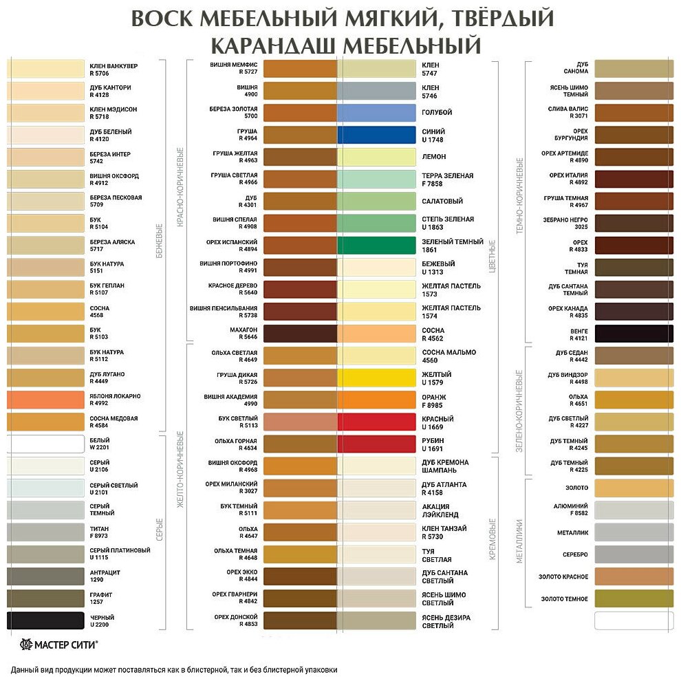 | Состав | Натуральные и синтетические воски, модифицирующие добавки, красящие пигменты. |