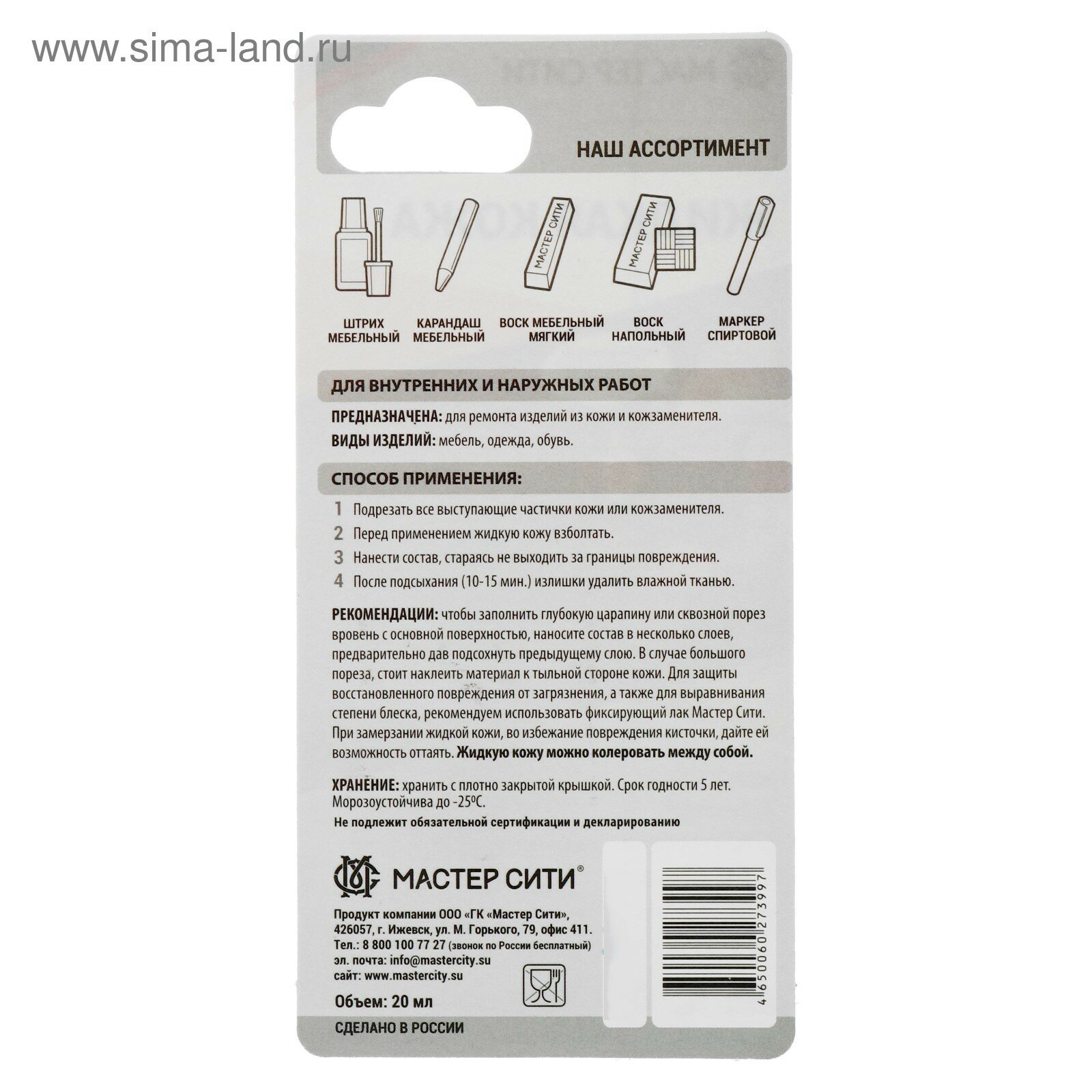 Жидкая кожа для ремонта кож. изделий бел. 101 20 мл Мастер сити 2101101