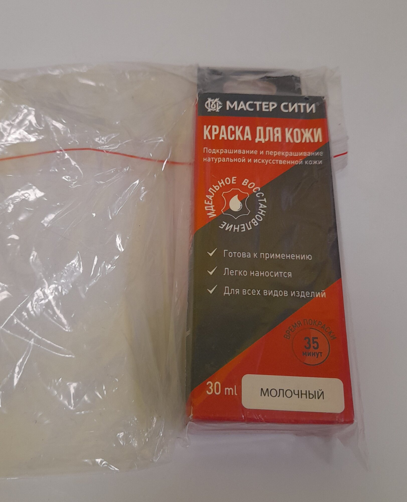 Краска создает прочный, эластичный поверхностный слой с высокими эксплуатационными и эстетическими характеристиками.Подходит как для окрашенной, так и неокрашенной кожи.Используется для подкрашивания и перекрашивания натуральной и искусственной гладкой кожи.Обеспечивает надежную защиту изделия от механических и погодных воздействий.Освежает и восстанавливает цвет, быстро высыхает.Обладает водоотталкивающим эффектом, продлевает срок службы изделия.При высыхании образует полуглянцевое покрытие (средняя степень блеска).Легко наносится, не требует специальных навыков.Краска применяется для:обувисумокаксессуароводеждыкожаной мебелисалонов автомобилейдругих изделий из натуральной и искусственной гладкой кожи. Краска представлена в широкой цветовой палитре. Её можно легко колеровать цвета между собой для получения необходимого цвета или оттенка. Применяется как самостоятельный продукт, так и после ремонта и реставрации потертостей, царапин и сквозных порезов жидкой кожей «Мастер Сити». Средний расход краски составляет 40-50 мл/м2 в зависимости от вида кожи и ее впитывающей способности. Одного флакона краски достаточно для покраски до 1 м2 изделия: ботинки или небольшая сумка или невысокие сапоги. Для покраски больших площадей воспользуйтесь краской для мастеров Мастер Сити. Не использовать для замши, нубука и кож деликатной выделки! Если на коже есть повреждения, царапины, потертости - то перед покраской такие места необходимо восстановить жидкой кожей. Искусственная кожа полному перекрашиванию не подлежит! Краска создана при участии и под контролем Мюнхенского технического Университета. Разработана с учетом запросов самых требовательных потребителей рынка. Прошла успешное тестирование в мастерских по реставрации кожаных изделий, на мебельных производствах, в детейлинг – центрах и получила высокую оценку профессионалов рынка реставрационных материалов.комплектация: Флакон 30 мл, губка для нанесения, инструкция. Упакован в фирменную коробку.Состав: полиуретан-акриловая краска на водной основе.
