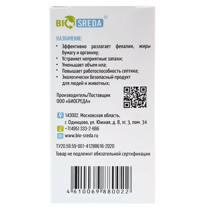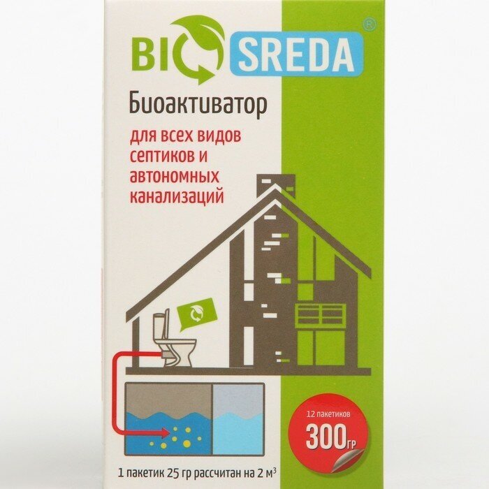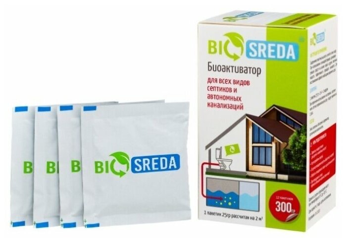 Биоактиватор для всех видов септиков и автономных канализаций Biosreda — экологически безопасный препарат на основе ферментов и почвенных бактерий, способных быстро разлагать органические отходы, фекалии, жиры, бумагу, уменьшать объем заиливания и нейтрализовать неприятные запахи.