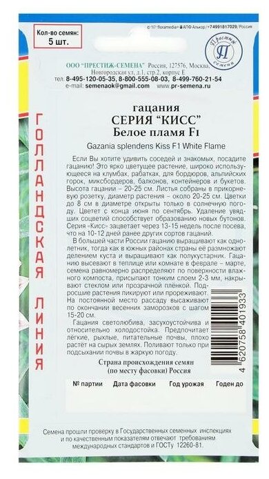 Сервис сравнения цен СкидкаГИД предлагает сравнить цены на товар «Семена цветов Гацания "Кисс" F1 Белое пламя О 5 шт Престиж-Семена»