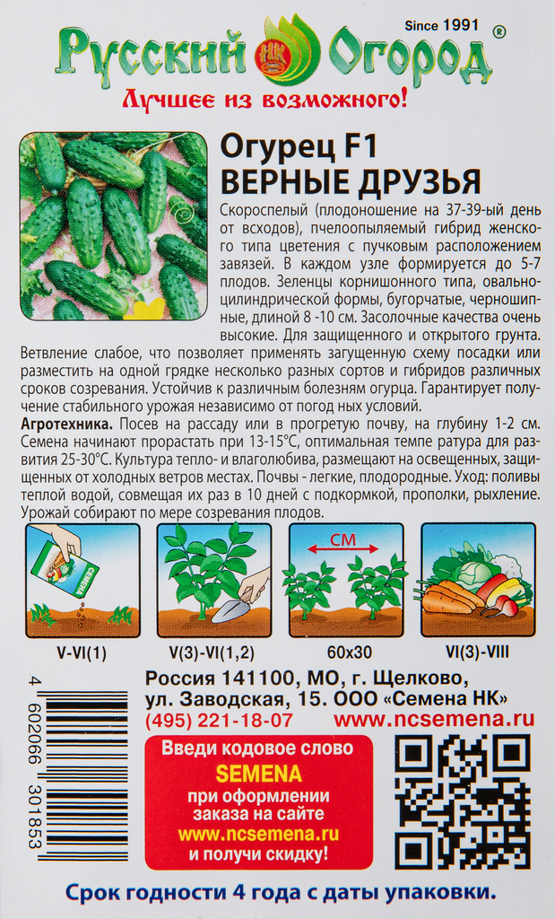 Огурец семена русский огород Верные друзья