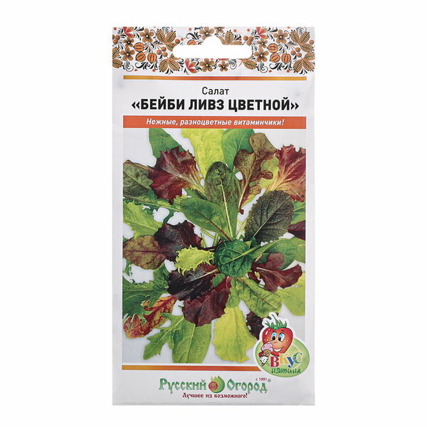 Семена Салат листовой "Бейби Ливз" цветной смесь ц/п 3 г Русский огород