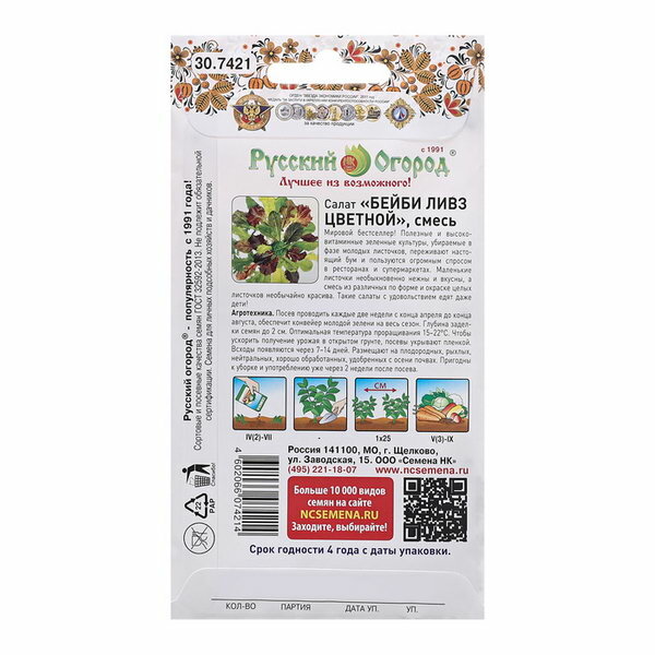 Сервис сравнения цен СкидкаГИД предлагает сравнить цены на товар «Семена Салат листовой "Бейби Ливз" цветной смесь ц/п 3 г Русский огород»