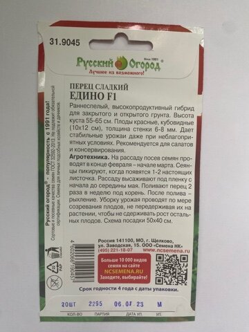 Семена перец едино F1 20шт Русский огород