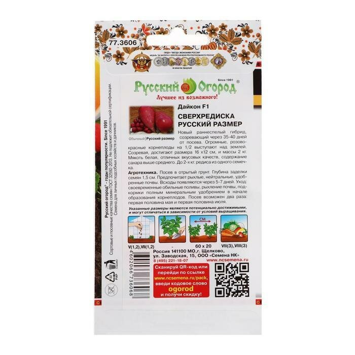 На сегодняшний день товар «Семена Русский Огород Русский Размер Дайкон Сверхредиска F1 20 шт.» можно купить с кешбеком в 1 магазине: Яндекс.Маркет