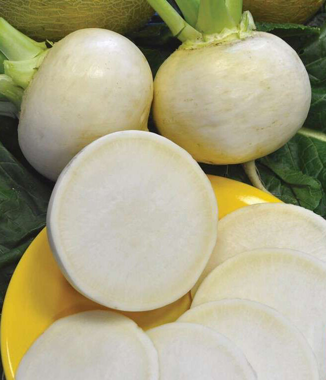Среднеспелый сорт, техническая спелость наступает на 70-72 день. Корнеплод белый, короткий, диаметром 10-12 см, массой до 500 – 800 г. Мякоть белая сочная, не деревенеет. Вкусовые качества отличные.