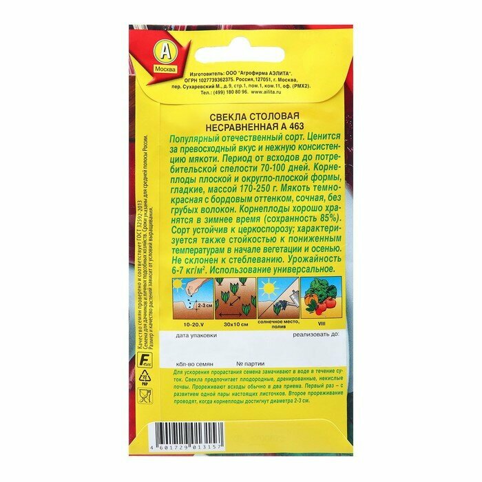 Семена Свекла столовая Несравненная А 463 Ц/П 3г: отличный выбор для любителей овощей, ягод и цветов.Семена свеклы столовой Несравненная А 463 Ц/П 3г представляют собой высококачественный продукт, который обеспечит отличный урожай. В комплекте вы получаете 2 штуки семян, что позволит вам посадить больше растений и получить больше урожая.Вес каждой упаковки составляет 3,0 грамма, что делает их удобными для посадки и хранения.Семена свеклы столовой Несравненная А 463 Ц/П 3г подходят для выращивания овощей, ягод и цветов. Они обеспечивают быстрое прорастание и развитие растений, что позволяет получить урожай в короткие сроки.Выбирая семена свеклы столовой Несравненная А 463 Ц/П 3г, вы получаете качественный продукт от проверенного производителя, который обеспечит вам отличный урожай и удовольствие от выращивания собственных овощей, ягод и цветов.
