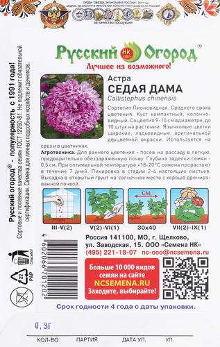 Семена. Цветы Астра "Седая дама" (вес: 03 г) Русский огород