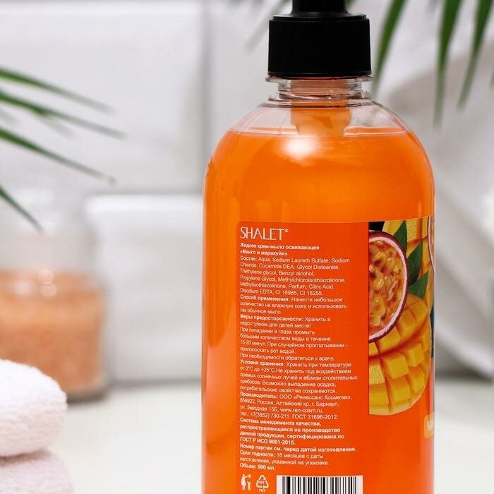 Жидкое крем-мыло Shalet от «Ренессанс Косметик» обладает густой кремовой консистенцией. Содержит ингредиент на основе кокосового масла, который увлажняет кожу рук. Без синтетических красителей и парабенов. Парфюмерные композиции созданы в Англии и Германии. Перерабатываемая упаковка.