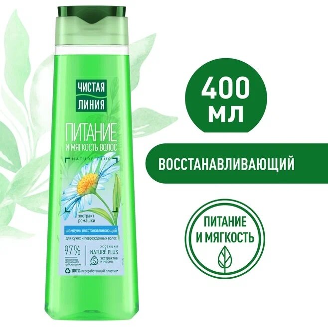 Чистая Линия восстанавливающий шампунь питание и мягкость для сухих волос с экстрактом ромашки 250 мл