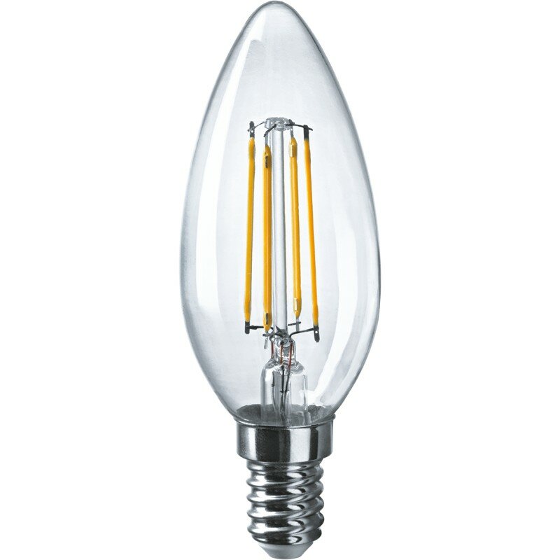 Откройте мир качественного освещения с лампочкой Онлайт, идеально подходящей для использования в люстре или бра. Эта филаментная лампа с цоколем E14 универсальна и эффективна, что делает ее отличным выбором для тех, кто ценит энергосберегающие технологии. Ее яркий белый свет (4000 К) идеален для создания уютной атмосферы в вашей квартире. LED лампочка филамент Онлайт имеет массу преимуществ перед обычной лампой накаливания: ведь она работает до 10 раз дольше, экономя при этом электроэнергию. Наша светодиодная лампа в форме свечи безопасна для глаз, поэтому рекомендована для освещения детских, также подойдет для рабочих зон, кабинетов и других помещений, где необходим яркий и качественный свет. Совместимость с различными типами осветительных приборов: потолочными светильниками, накладными и подвесными люстрами и тд - делает нашу лампу идеальным решением для любого дома.