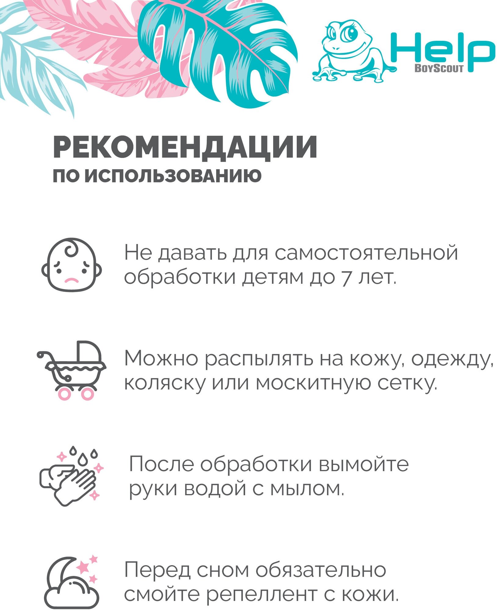 Репеллент Help предназначен для защиты детей с 2 лет и людей с чувствительной кожей от нападения летающих кровососущих насекомых (комаров, мокрецов, москитов) при нанесении на открытые части тела.