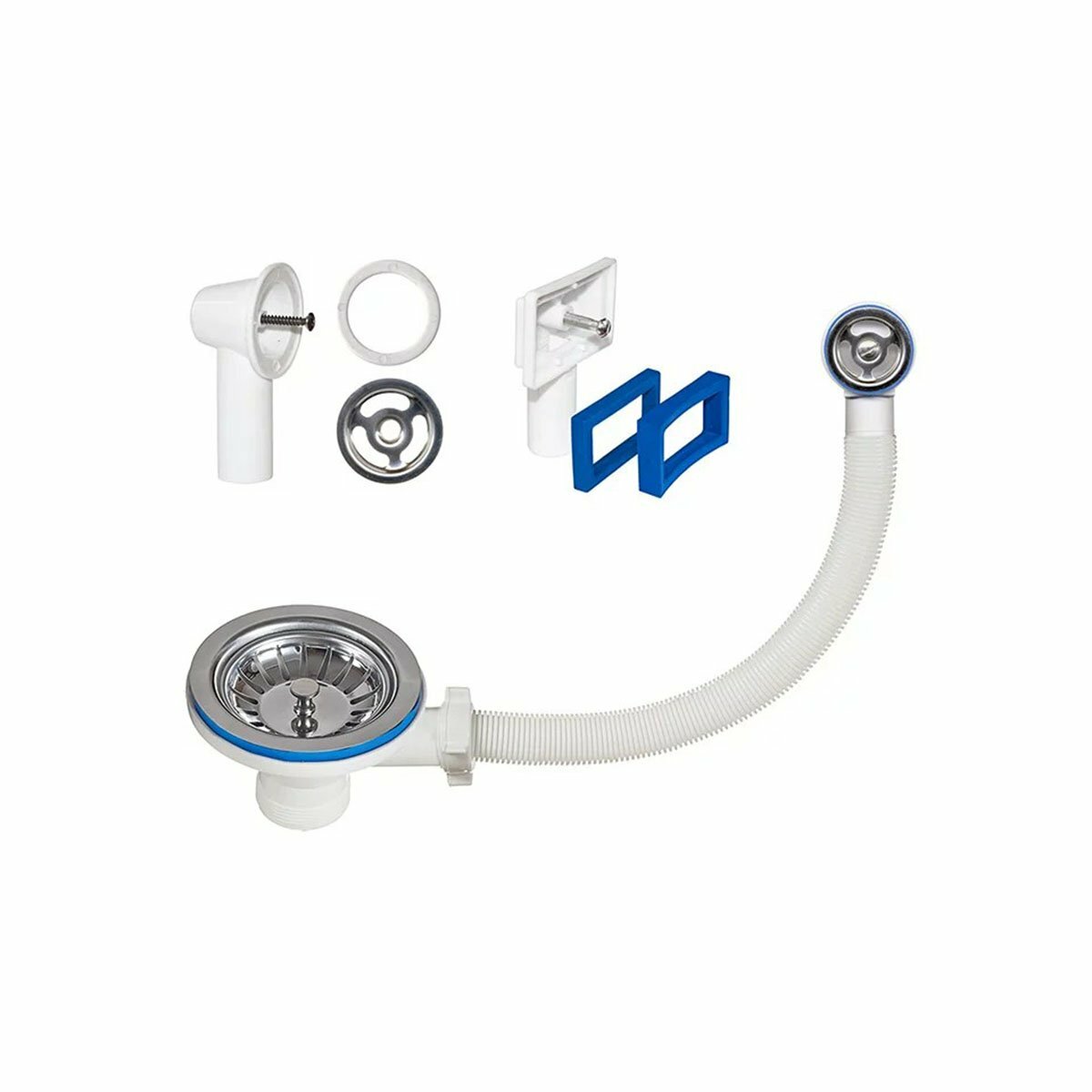Пластиковый выпуск с нержавеющей чашкой диаметром 114 мм и решёткой-пробкой, для кухонной мойки с прямоугольным или круглым переливом и диаметром слива 90 мм. В комплекте идут также две прокладки на прямоугольный перелив – прямоугольная на квадратную форму мойки и полукруглая на круглую форму мойки. Необходим сифон с гайкой 1 1/2". Соединяет мойки и раковины с канализационной трубой, обеспечивает слив стоков, защищает систему канализации от посторонних предметов. Материал выпуска: полипропилен; Материал решетки: нержавеющая сталь; Диаметр решетки: 114 мм; Диаметр выпуска: 3 1/2".