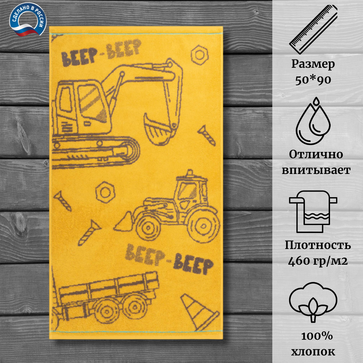 Детское полотенце Cleanelly Basic Building Machine жёлтое с серым 50х90 см