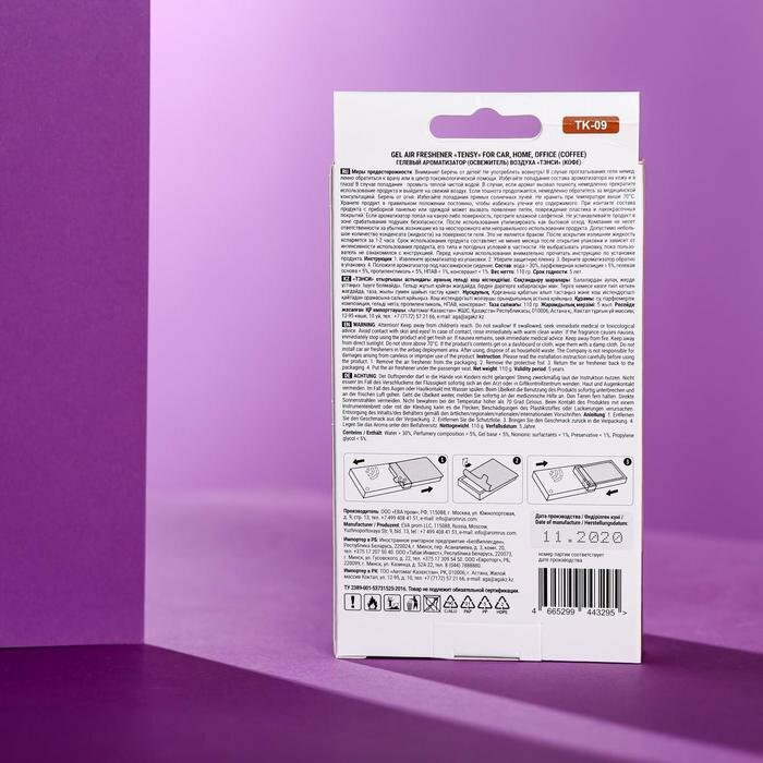 | Способ применения | Уберите защитную пленку и верните ароматизатор обратно в упаковку. Положите ароматизатор под пассажирское сиденье. |